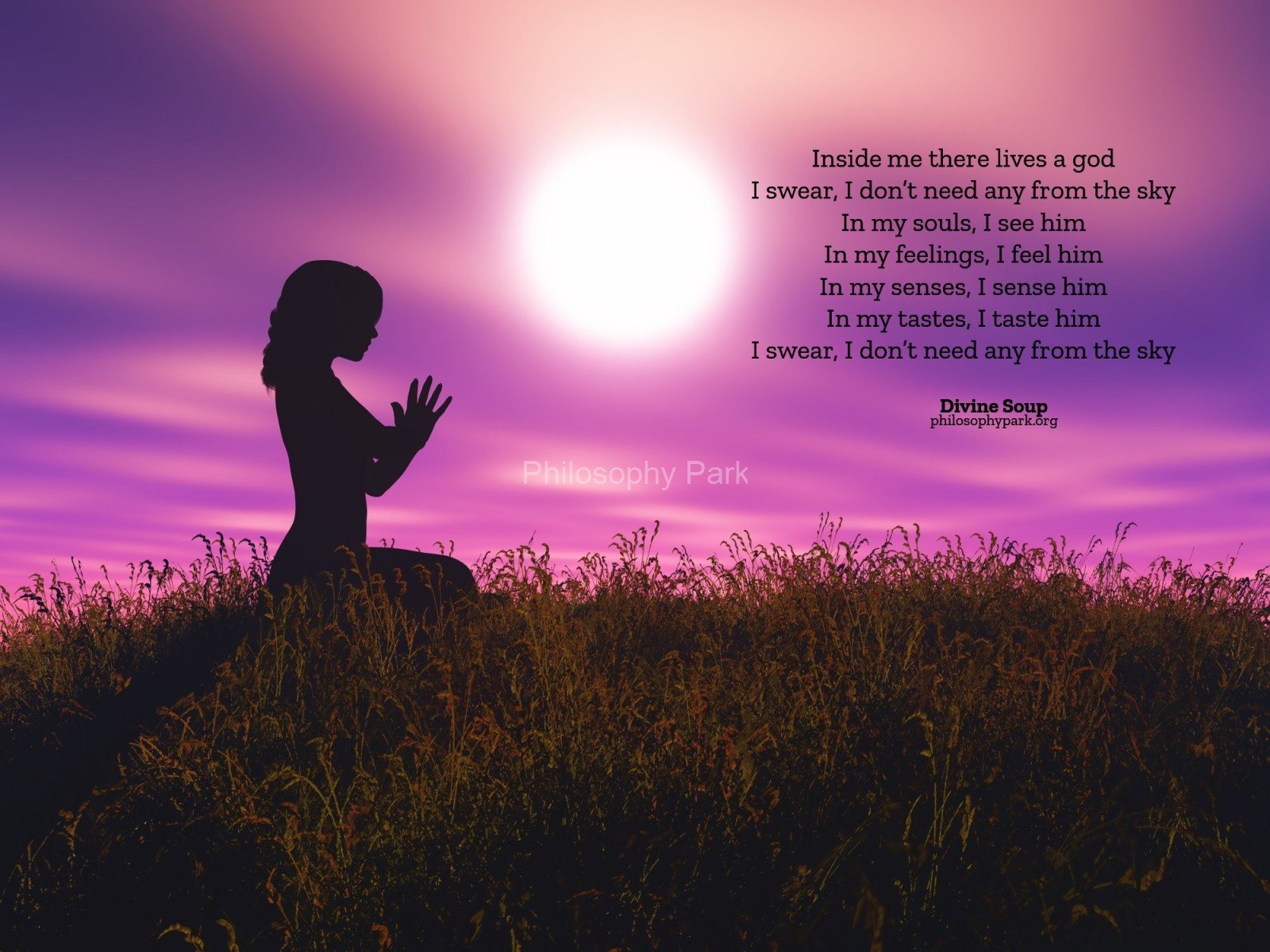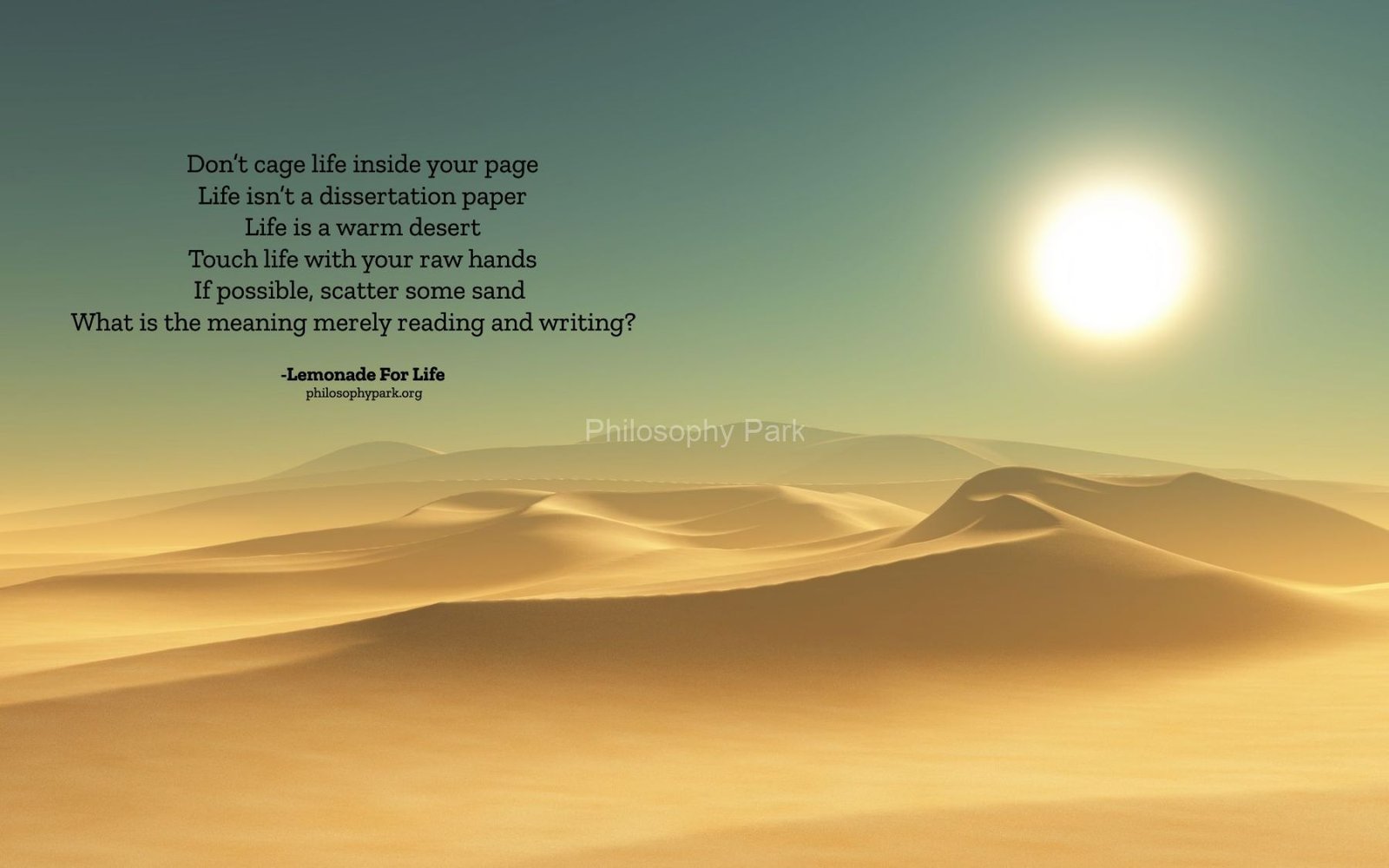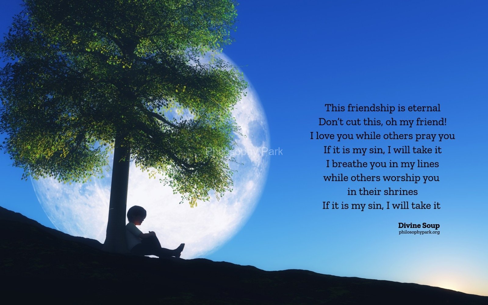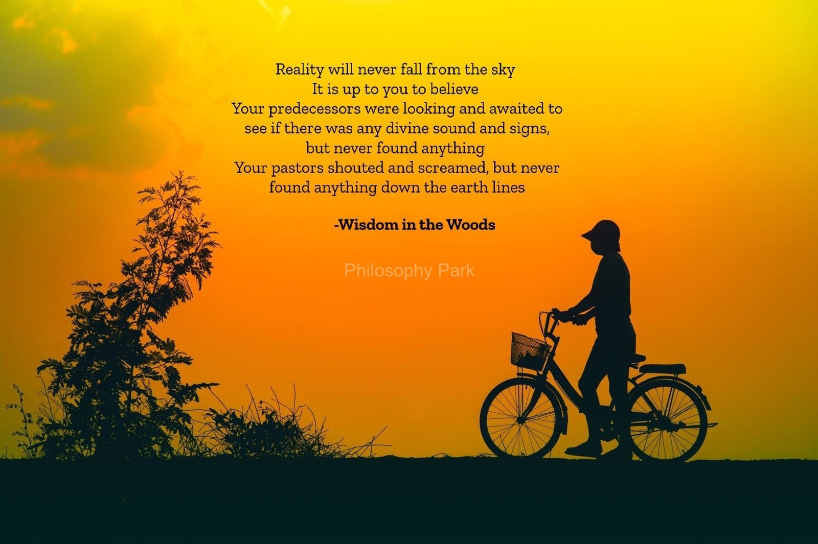 Philosophy Park is a postmodern Practical School of Philosophy based on a series of hands-on doctrines that include living a harmonious and meaningful life with Nature, moderate Science & Technology, Wisdom, Poetry, Music, and Art & Beauty.