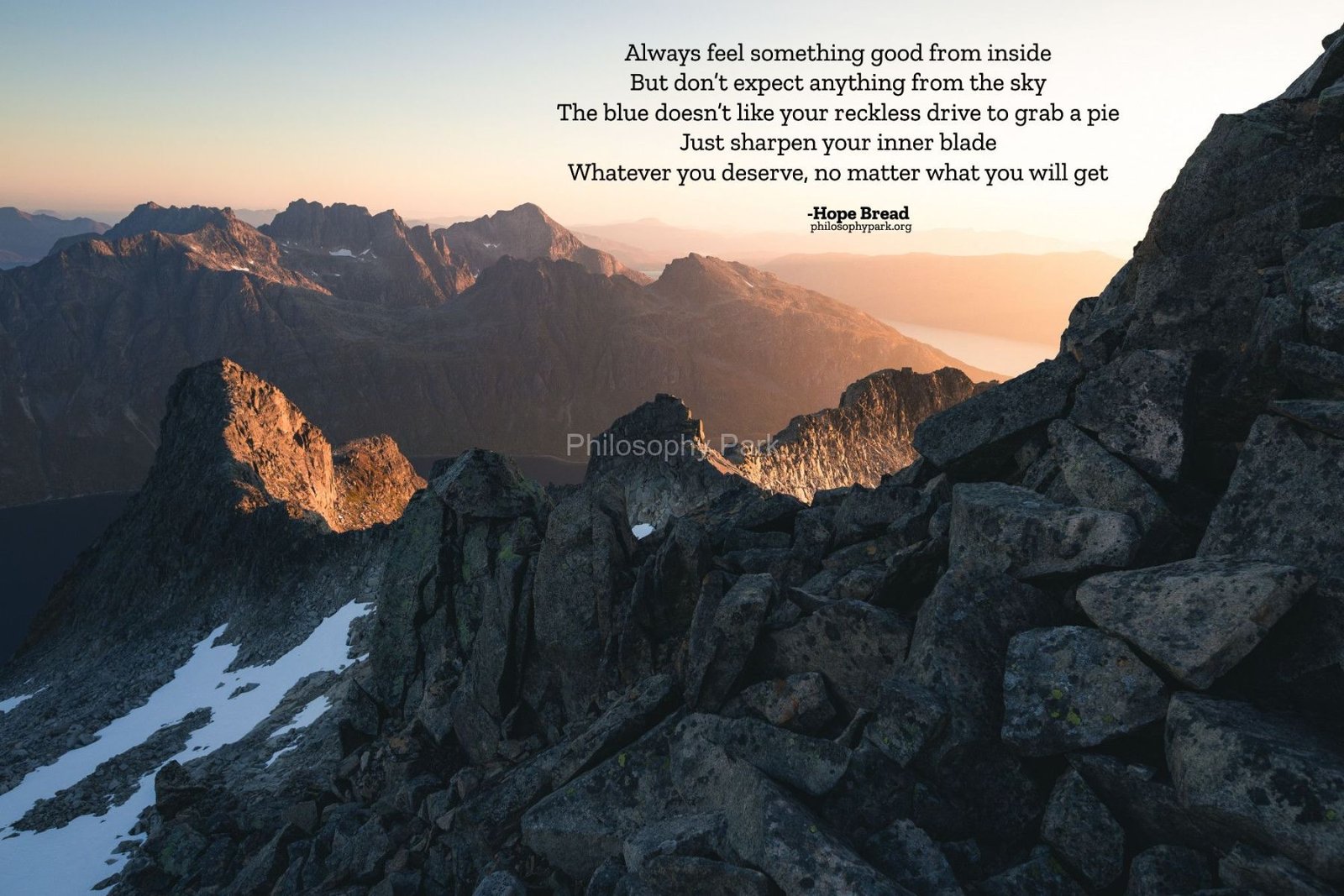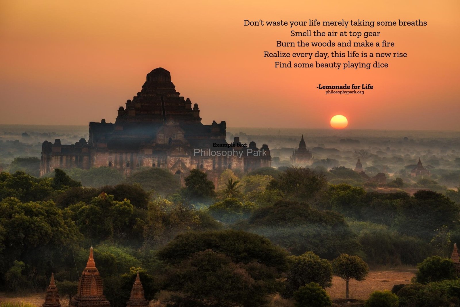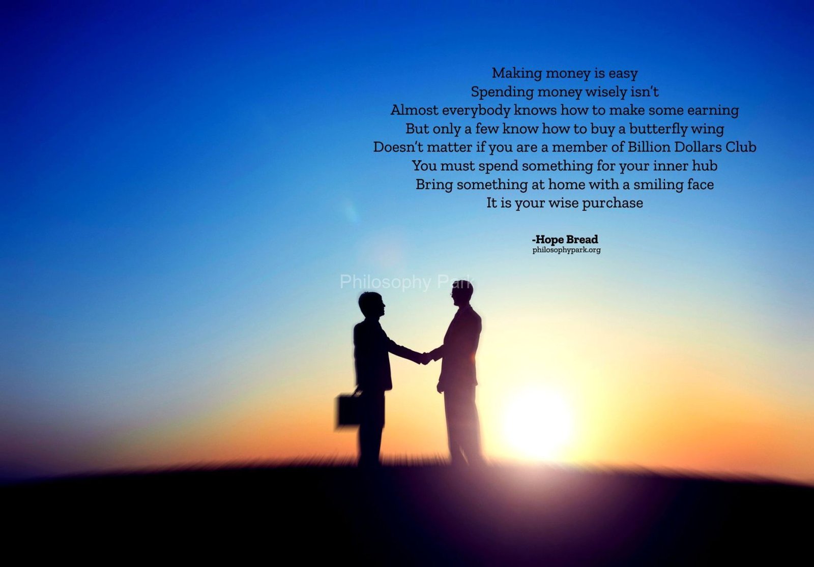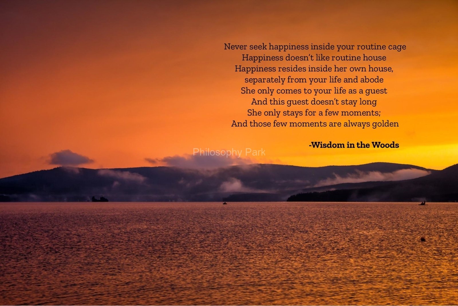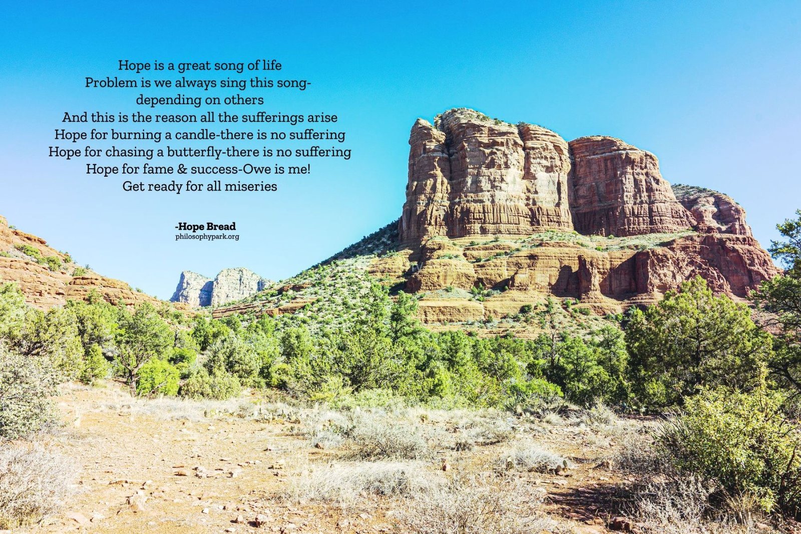 Philosophy Park is a postmodern Practical School of Philosophy based on a series of hands-on doctrines that include living a harmonious and meaningful life with Nature, moderate Science & Technology, Wisdom, Poetry, Music, and Art & Beauty.