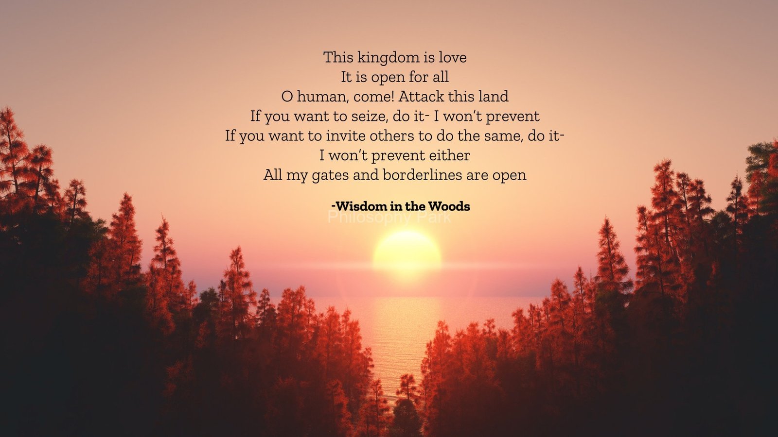 In other words, Philosophy Park is an Enlightenment Park that aims to restore Human Authenticity and promote Inner Peace and Art & Beauty. More significantly, it is a new space for Transcendentalists, Idealists, Poets, Singers, Artists, freethinkers, and all other future seekers. We describe ourselves as:
